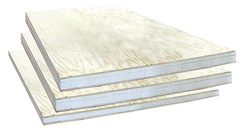 Sandwichelementen levereras med ytskikt av 9 mm plywood, alternativt med 6mm fibercement skiva på ömse sidor av en kärna av EPS-cellplast med valfri tjocklek från 30 till 200 mm.