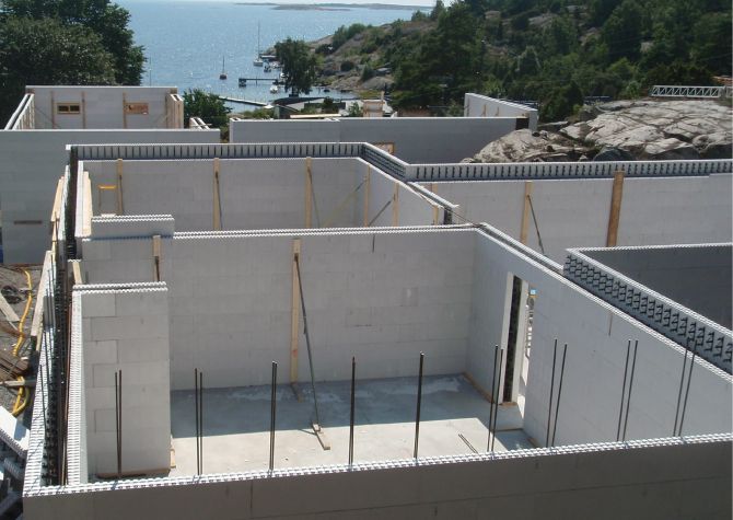 Väggsystemet monteras genom att man staplar byggklossar som är 300mm höga och 1200mm breda. Det finns flera tjocklekar men standarden är 350mm. Man lägger i armering enligt konstruktionsritning i färdiga ”plastbindare” i elementen allteftersom man staplar. När den färdiga höjden är uppnådd, fyller man i betong, en meter i taget.